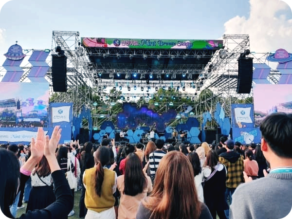 - Mint Breeze Stage: 스탠딩 존 + 피크닉 존 (88 잔디마당)